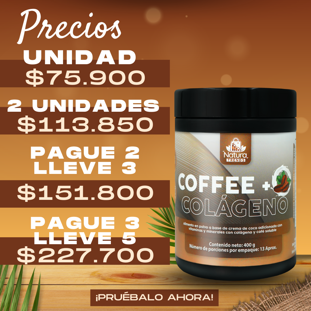 Es un alimento en polvo a base crema de coco adicionado con vitaminas y minerales con colágeno y café soluble.