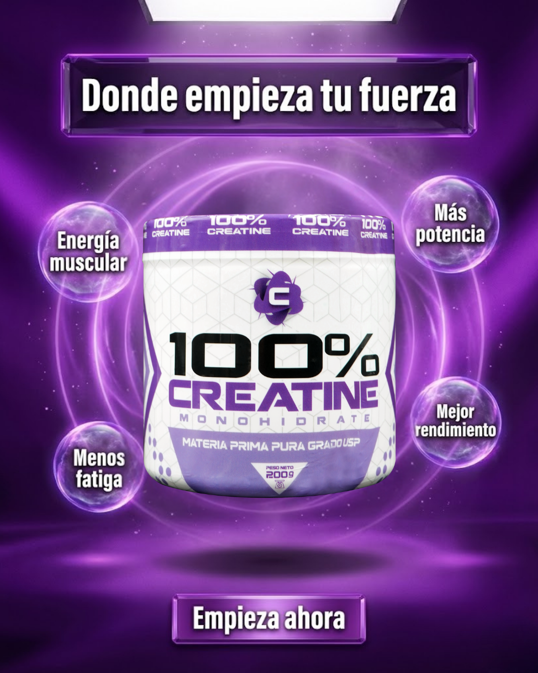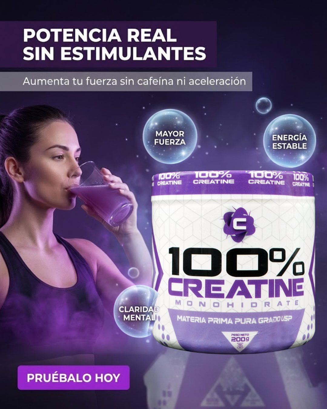 La creatina monohidratada es un compuesto presente de forma natural en el cuerpo humano, involucrado en la producción de energía celular (ATP). Su suplementación puede ser útil para: